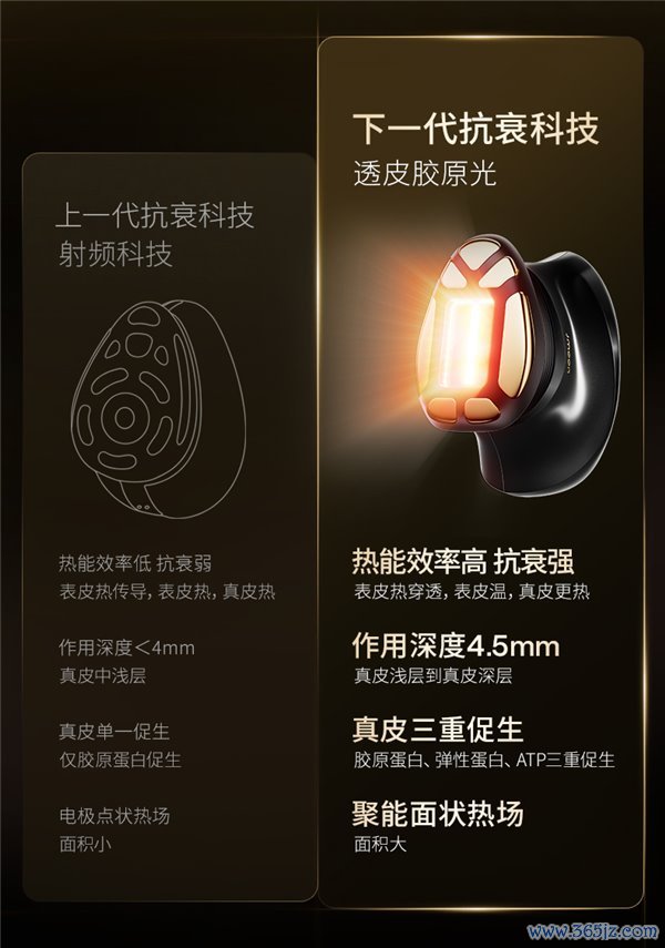 围绕“透皮胶原光”,行业专家做出了详细说明。简单来说,这一技术方法整合了各种优势,提供了更好的抗衰效果,如果说射频技术处在抗衰 1.0 阶段,那么“透皮胶原光”就是全面超越射频的抗衰 2.0 技术。极萌透皮胶原光美容仪对比传统射频美容仪,其优势显著: